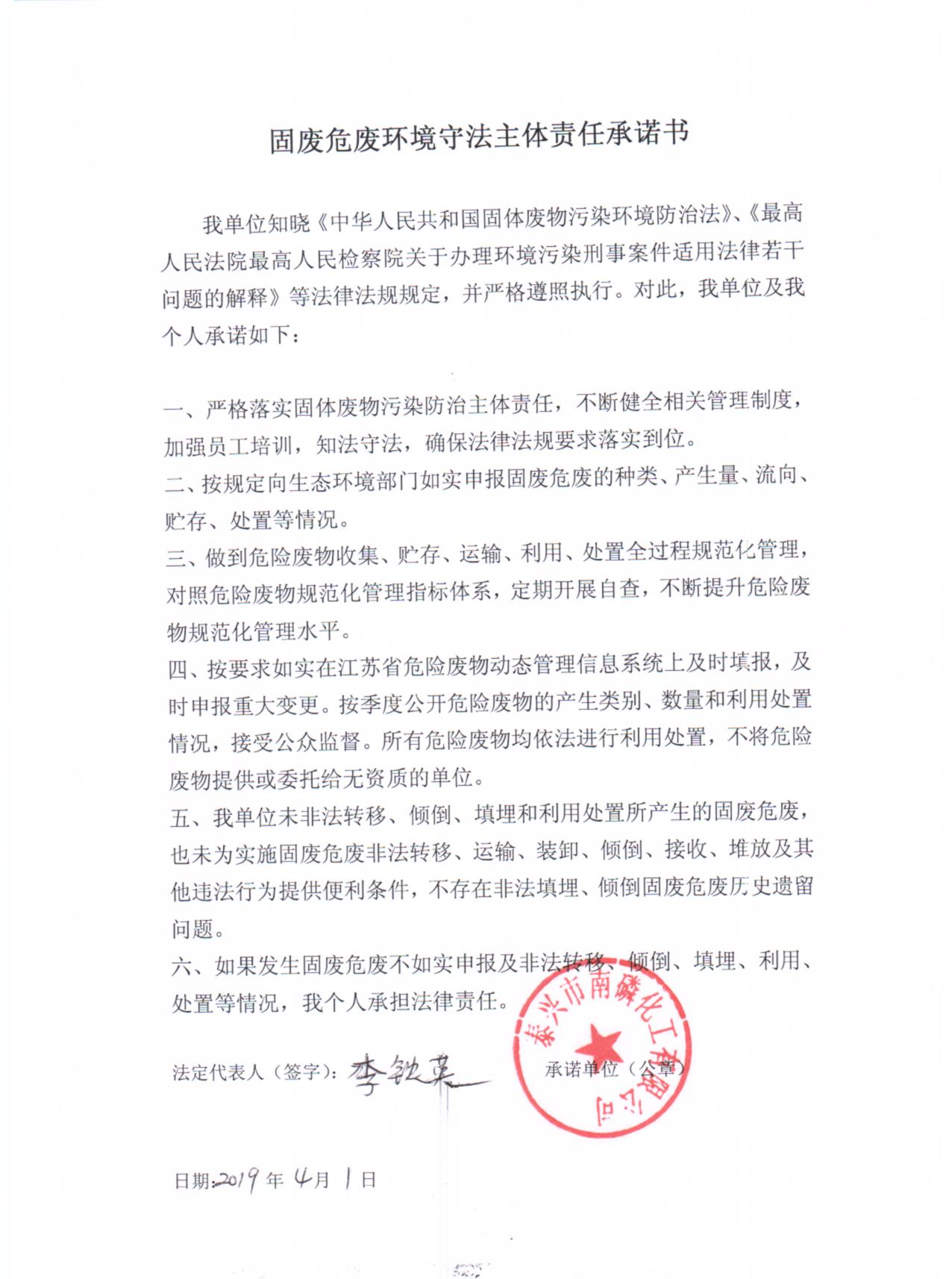泰興市南磷化工有限公司突發(fā)環(huán)境事件應(yīng)急預(yù)案電子版鏈接; 備案編號(hào):321283-2019-009-H |